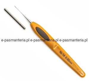Szydełko do kordonku z wyprofilowaną rączką, w komplecie metalowa nakładka zabezpieczająca główkę szydełka. Rozmiar 0,5