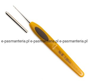 Szydełko do kordonku z wyprofilowaną rączką, w komplecie metalowa nakładka zabezpieczająca główkę szydełka. Rozmiar 1'