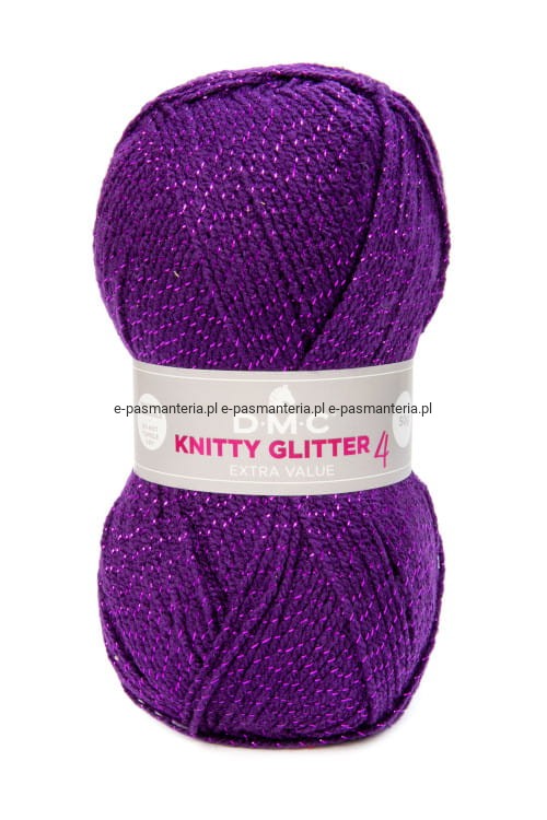 Knitty 4 Glitter DMC to wysokiej jakości włóczka akrylowa z metalicznym akcentem. Ciepła, lekka, miękka, szybkoschnąca, łatwa w utrzymaniu. Idealna do wszystkich rodzajów odzieży.