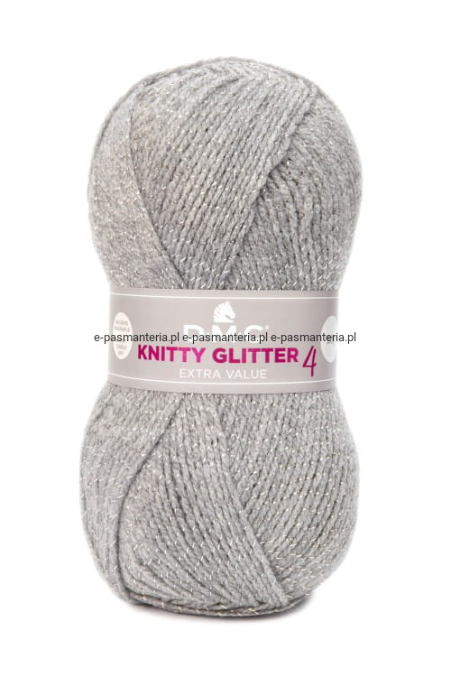 Knitty 4 Glitter DMC to wysokiej jakości włóczka akrylowa z metalicznym akcentem. Ciepła, lekka, miękka, szybkoschnąca, łatwa w utrzymaniu. Idealna do wszystkich rodzajów odzieży.