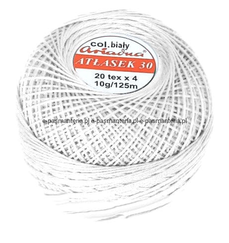 ATŁASEK 30 to lśniąca nitka przeznaczoną do haftu. Nadaje się do wykonywania szwów zdobniczych i innych zdobień oraz wszelkiego rodzaju technik haftów, takich jak: haft płaski, haft Richelieu, haft ze Schwalm.