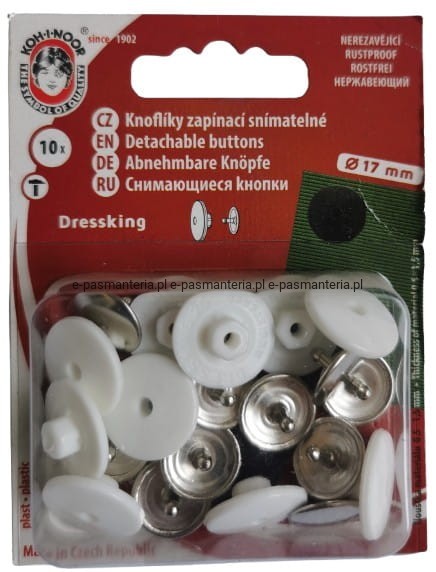 guziki do spodni KOHINOOR fi 17mm 10szt białe