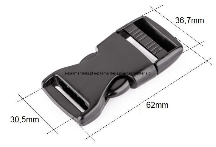 Klamra plastikowa czarna o szerokości szczeliny dla paska 30mm.